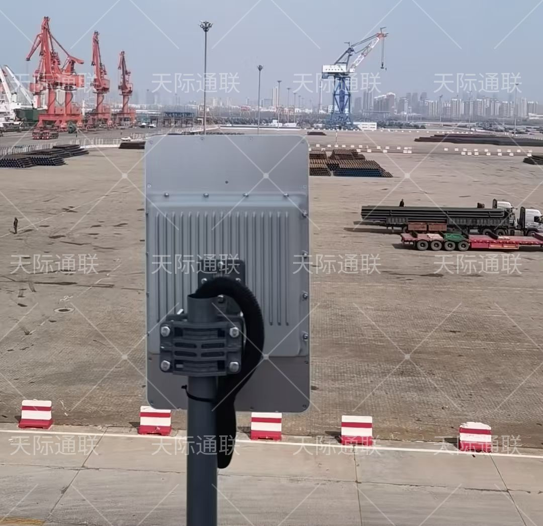 为满足营口港各区域门机监控与控制需求,项目部署 40多套天际通电信级基站与 150 多套电信级网桥。针对门机数量多、信号传输要求高的特点,采用 “1 对 3/4” 组网模式,确保视频与控制信号稳定传输,在汇聚端,配置天线一体化基站,门机端,配置分体式并于门机两侧安装两根全向天线,有效克服门机旋转带来的信号遮挡难题,保证 RCMS 系统能持续获取门机运行状态;同时,于合适点位部署一对多汇聚设备,将分散的门机数据整合,最终通过点对点传输链路,将数据稳定回传至调度中心,助力 RCMS 系统实现对门机作业流程的全流程监测与智能化控制,大幅提升港口设备管理效率与作业安全性。
