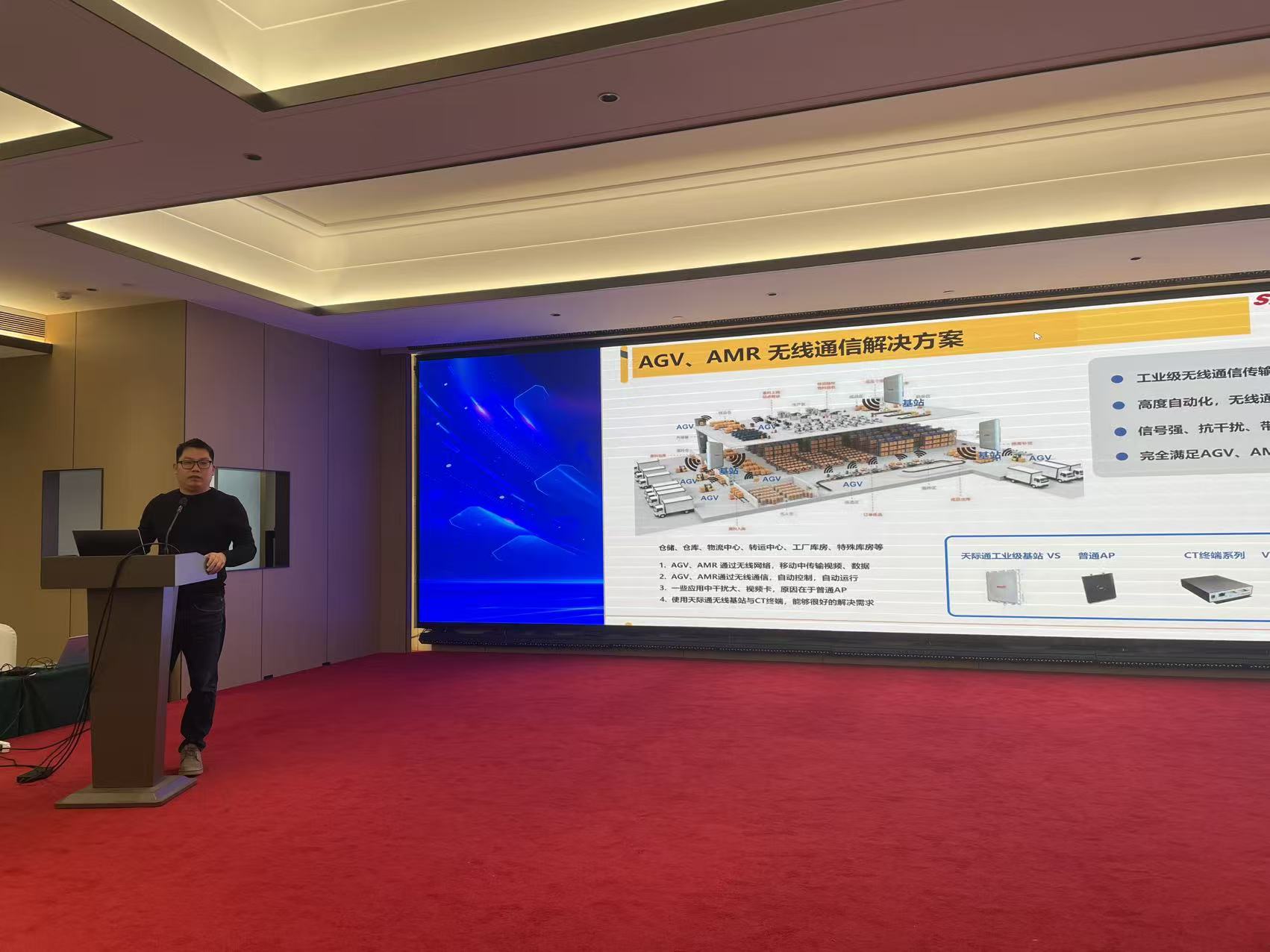 在专题PPT 讲解环节,天际通联技术团队围绕 “工业通信助力 AI 数智化转型” 核心主题,结合七大系列无线通信产品(涵盖 WiFi 广覆盖、高性能传输、WAPI 安全、工业交换机等),详细拆解了多场景适配的解决方案: